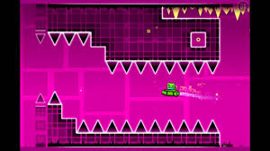 Geometry Dash has no geometry whatsoever. Isn't that just strange? It is made with squares and triangles but that's probably it. See? No math! That may be one reason why so many people like this game. Now I'm going to tell you the objective of this game and how it works. You have your little square character that moves across the screen. If you have played Temple Run it is a bit like that. Then, little triangular obstacles appear and the square needs to jump over by tapping the screen. If you want to repeatedly jump, you tap and hold. It sounds easy but it really isn't. Now we come to our  second reason why people love this game so much: It is challenging! When there is something challenging but fun that you want to win, you play it more and it gets addicting! It gets so addicting that your younger sibling hogs your iPad all day! How annoying is that? You will want to complete each and every level. While playing this cool game, they have background music. Here comes our third reason this game is nice: The tunes are extremely catchy. You will soon find yourself using the music as your ring tone!